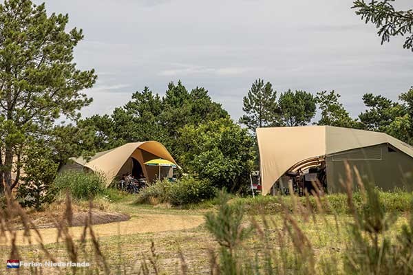 - Duynlodge, ein komplett eingerichtetes Zelt für 6 Personen mit Vordach und Terrasse
