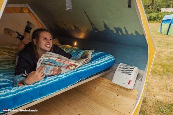Lieben Sie das entspannte Gefühl des Campings, im Freien leben und das ganze Campinggefühl? Möchten Sie aber kein Zelt aufbauen, oder besitzen Sie keine Campingausrüstung? Kein Problem! Camping Pasveer in den niederländische Provinz Friesland bietet Ihnen sehr gut ausgestattete Glamping Safari-Zelte. Kein Herumgeschlepp von Campingausrüstung, sondern Urlaub auf einem schönen Bauerncampingplatz am Wasser, in der nähe des gemütlichem Stadtzentrums und das Sneekermeer. Auf dem Campingplatz stehen 2 Robuste Safari-Zelte für 6 Personen. Die Zelte sind komplett ausgestattet und haben einen Wohnbereich von ungefähr 30 Quadratmeter und Kopfhöhe im ganzen Zelt. Die Vorderseite des Zeltes kann komplett geöffnet werden was besonders bei schönem Wetter sehr angenehm ist. Ein schönes Extra ist die Terrasse mit Markise, so dass Sie auch bei weniger gutem Wetter draußen sitzen können.