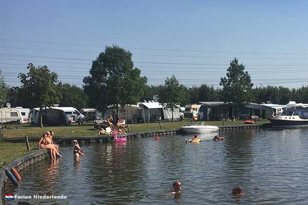 Campingplatz mit Jachthafen und Bootsrampe (Slipanlage) am Sneekermeer in Friesland Holland