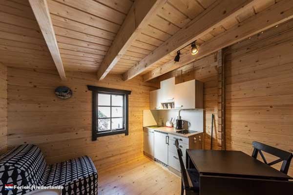 Dieses beheizte Mini-Chalet eignet sich für bis zu 4 Personen und ist mit einer Küche mit 2-flammigem Induktionskochfeld, einer Senseo-Kaffeemaschine und einem Wasserkocher ausgestattet. Es ist ein Stockbett für 2 Personen vorhanden, 90 x 200 cm, und ein Schlafsofa. Das Bettzeug, Handtücher etc. muss man selbst mitnehmen. Eine Übernachtung in dieser tollen Blockhütte in einmaliger Lage an der Küste der niederländischen Provinz Nord-Holland ist ab €67,50 pro Nacht zu buchen.