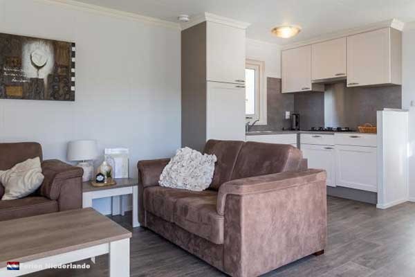 Chalet Oase befindet sich in einmaliger Lage im Ferienpark De Duindoorn in Holland. Das große Chalet misst 11 x 3,75 m und ist für 2 Personen ausgelegt. Chalet Oase bietet Ihnen jeglichen Komfort, den Sie auch von Zuhause gewohnt sind. Die offene Küche verfügt über einen 4-flammigen Gasherd, eine Senseo-Kaffeemaschine, einen Wasserkocher und einen Geschirrspüler. Das luxuriöse Chalet besitzt zudem ein eigenes Badezimmer mit Dusche und WC, eine Essecke und eine gemütliche Sitzecke. Der Fernseher hat auch deutsche Sender. Die nach außen aufschwingende Doppeltür führt auf die eigene Terrasse hinaus, wo es ein Garten- und Loungeset gibt und den zugehörigen Sichtschutz. Dieses luxuriöse Chalet an der Küste von Holland können Sie bereits ab €350,- für eine Mitt-Woche, €375,- für ein langes Wochenende oder ab €550 für eine ganze Woche buchen.