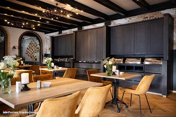 Die Brasserie des Hotel Restaurant De Rustende Jager empfängt nicht nur Hotelgäste, sondern wird auch täglich von Einheimischen besucht. Der Tag beginnt mit einem gepflegten Frühstück, danach bietet das Restaurant freitags, samstags und sonntags eine zugängliche Mittagskarte mit reich belegten Sandwiches auf Landbrot, Salaten, Kroketten sowie warmen Gerichten wie Burgern und Hähnchensaté. An allen Abenden der Woche serviert die Küche eine abwechslungsreiche Abendkarte mit Fisch-, Fleisch- und vegetarischen Gerichten, darunter Klassiker wie gebratenes Kabeljaufilet, Tournedos und wechselnde Tagesgerichte. Auch für eine Tasse Kaffee, ein Dessert oder einen kleinen Aperitif mit Häppchen ist die Brasserie ein angenehmer Ort zum Verweilen.