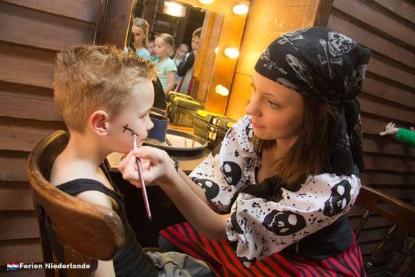 Auf dem Piratenschiff mangelt es an nichts, um die Kinder zu unterhalten. Vom Spielen in der großen Indoor-Konstruktion bis hin zum Schminken als wilder Pirat oder dem Tanzen in der Unterwasserdisco. Für jeden Geschmack ist etwas dabei.